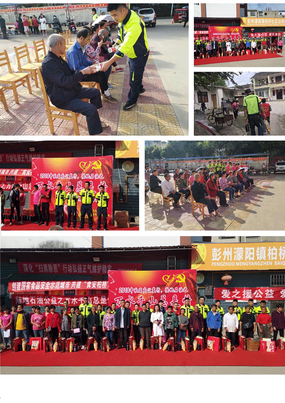2018年9月24日,陆地石油彭州市二桥站站长何天银组织彭州三个站点的同事到彭州市濛阳镇柏桥社区,开展“2018中秋国庆公益行,陆地石油之——万水千山总是情”主题公益活动,看望、慰问孤寡老人、残障人士、贫困家庭,为他们送去爱心物资。